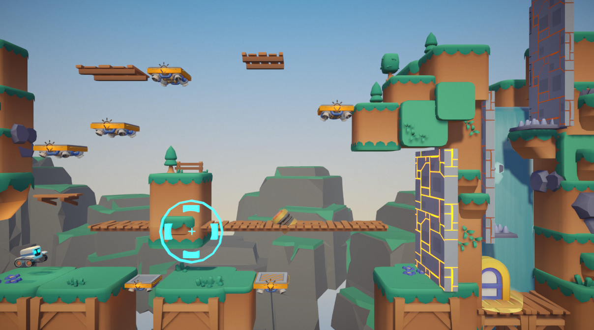 Player1 controls robot, use “A””D” to move and “Space” to jump
