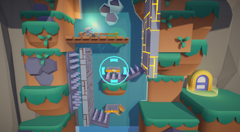 MASK can activate certain masks, allowing the robot to pass through. The robot can latch onto some walls to slow its descent. When MASK rests upon a spring, the spring begins to store energy; upon release, the robot is propelled forward. Certain walls and moving platforms also require MASK activation. Cooperate as a pair to overcome challenges together and achieve victory.